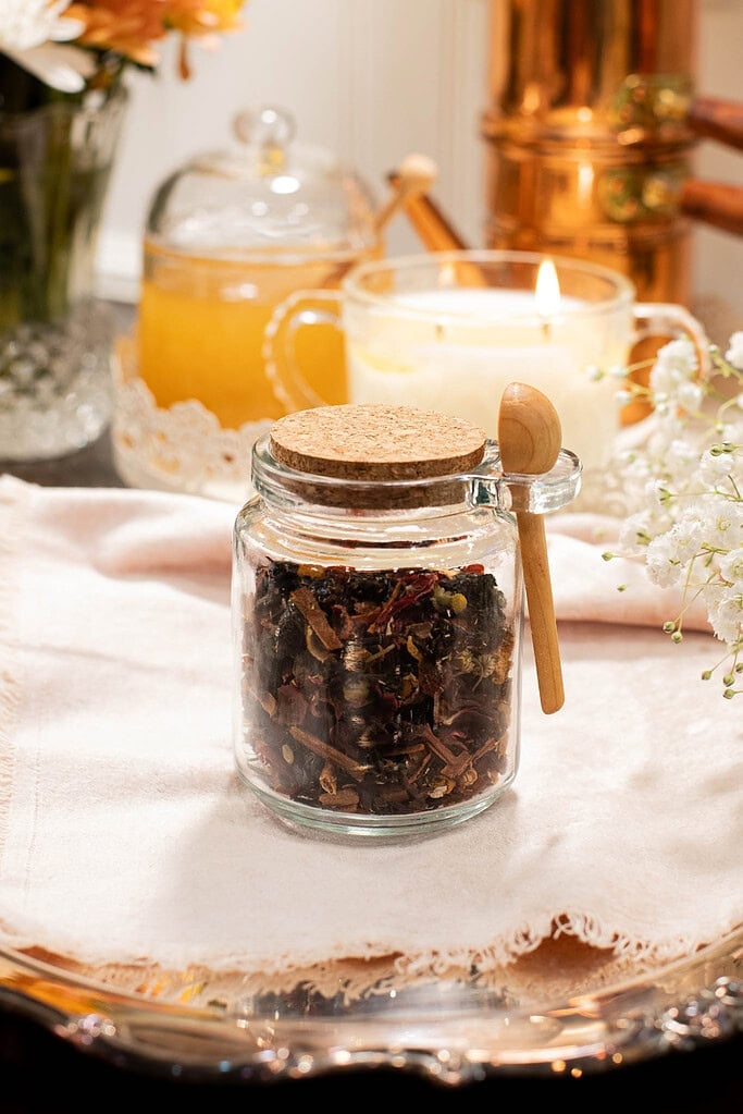 - Room temperature storage – Store the dry cherry hibiscus tea blend in an airtight glass jar with a secure lid in a cool, dry place away from direct light and heat. A pantry shelf or spice cabinet works well.