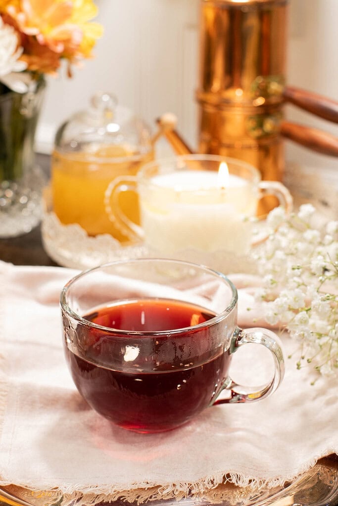 - Brewed tea – Store leftover brewed cherry hibiscus tea in a sealed mason jar in the refrigerator for up to 3 days. The flavor stays bright and the color holds beautifully cold.