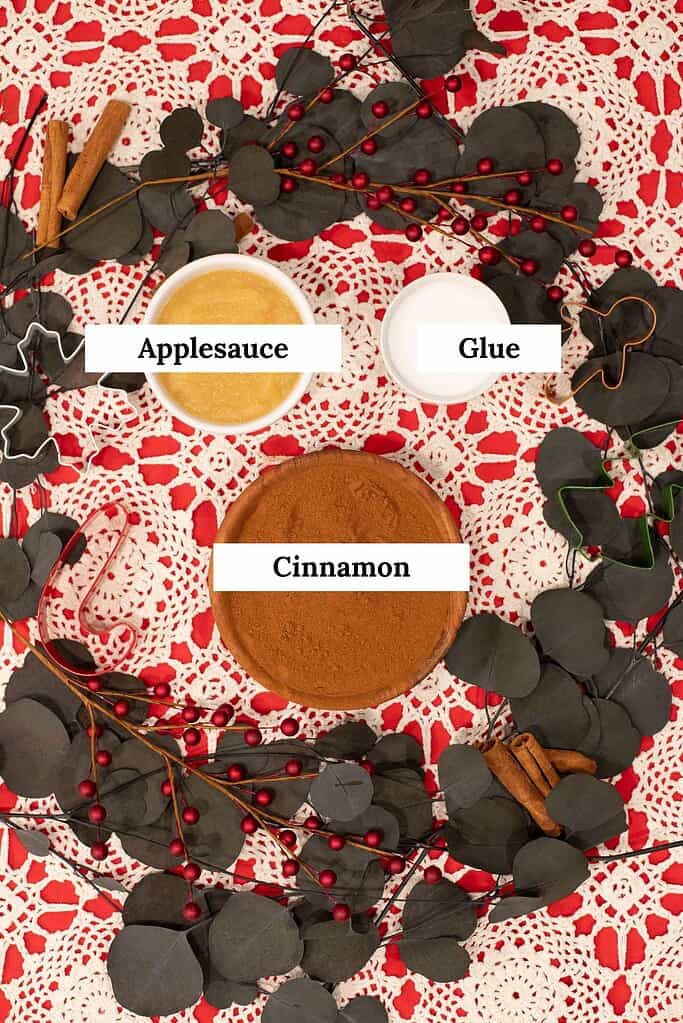 - Mix: Combine applesauce, ground cinnamon, and glue in a mixing bowl until a dough forms.